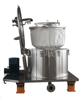 待分離的物料經(jīng)進(jìn)料管進(jìn)入高速旋轉(zhuǎn)的轉(zhuǎn)鼓內(nèi),在離心力的作用下,物料均布在過濾介質(zhì)上進(jìn)行脫液分離,液相透過固相物料和濾網(wǎng)縫隙,經(jīng)鼓壁孔甩至機(jī)殼空間,從出液口排出機(jī)外,固相物料截留在轉(zhuǎn)鼓內(nèi)形成濾餅。停機(jī)后,由專用吊具將濾袋連同濾餅一起吊出至指定地點(diǎn),松開卸料口,將濾餅卸出。